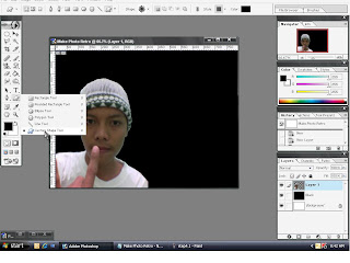 Lalu anda tuangkan color hitam ke lembar kerja anda dengan cara memakain Paint Bucket Tool di toolbox anda atau tekan saja di keyboard anda ALT + DEL. Maka secara otomatis lembar kerja kita akan bewarna hitam dan layers background pun menjadi warna hitam.